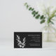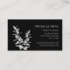 Black and white Modern Floral Event Planner business card, with a trendy botanical greenery design on a black background. With customizable white lettering, you can add your own information. An elegant way to promote your event planner business in style.