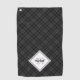 Trendy Black white tartan Personalize Monogram Golf Towel