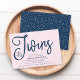 Celebrate the mom-to-be or the parents-to-be of twins with this stylish Baby Shower invitation featuring the words "It's Twins" in trendy blue brush script against a light pink background. Card has a blue and white speckled pattern back side. It's perfect for a girl baby shower. Check out more baby shower items here https://www.zazzle.com/rosewoodandcitrus/gifts?cg=196748758771183969?rf=238364477188679314