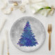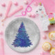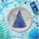Trendy Blue Silver Glitter Tree Christmas Paper Plate