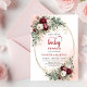 Trendy Boho Maroon Floral Gold Accent Baby Shower Invitation