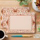 This trendy boho design features a unique pattern inspired by Native American prints. The stylish cream and rust orange colours are customizable.