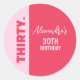 Trendy Bold Pink and Red Girly 30th Birthday Classic Round Sticker