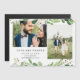 This elegant wedding magnetic thank you card features a spot for two of your favourite personal photos and lots of watercolor green foliage.