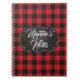 Trendy red & black buffalo plaid personalized notebook with chalkboard label. Buffalo plaid is red and black. Green will also be available. Part of a collection.