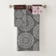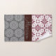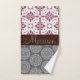 Trendy Burgundy and Grey Damask Monogram Bath Towel Set