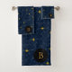 Enjoy witchy celestial vibes for your bathroom with this cute bath towels set! Personalize these fun and trendy towels with your monogram letter in gold. The the soft towels are patterned in white constellations and gold starbursts over a dark blue night sky!