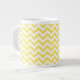 Hip et moderne tendance Chevron Jumbo Mug. Cette tasse cool est munie d'un motif zig zag en chevron jaune et blanc. Ajoutez du texte à cette conception pour lui donner une touche personnelle.