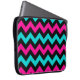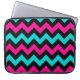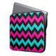 A fun, fashionable, and funky chevron stripes pattern in hot pink, turquoise, and black on a laptop sleeve.