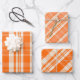 Trendy & Chic Orange & Cream Plaid Patterns Wrapping Paper Sheet