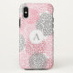 Trendy chic pink grey floral blooms with monogram Case-Mate iPhone case