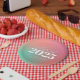 Trendy Class of 2024 Pink Gradient Graduation Paper Plates features a fun and bright gradient in shades of pink, peach, coral and teal green, along with stylish calligraphy and your graduation year.