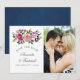 Navy and white themed roses and peonies floral save the date photo cards with accents of gold, blush pink and plum.