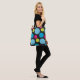 Fun tote bag with turquoise blue, pink, and lime green dots of various sizes on a black background. A modern and trendy pattern.