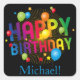 Colourful Happy Birthday Square Sticker. Party supplies for your special birthday party.