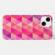 Trendy geometric pattern on phone case. In this design you can see colours like pink, coral, magenta and purple.