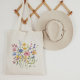 Trendy Colourful Wildflowers with Monogram Tote Bag