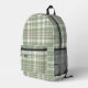 Trendy Cute Sage Green Plaid Monogram Initials Printed Backpack
