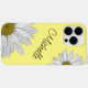 Trendy floral device case, with a white daisies design on a yellow background. With cute script typography white lettering, you can personalize with your own text. A great way to add a whimsical touch to your electronics!
