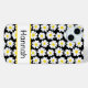 This iphone 15 plus phone case is so cute and girly! It's modern trendy daisy floral pattern with multi-sized white and yellow daisies on a black background and your name in a fun trendy font will go with everything! It will look fabulous on your phone!