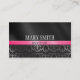 Striking damask card in black and pink. The illustration shows some interesting graphic effects. This card will look more striking if you choose a "pearlized finish paper stock" for maximum impact. Your name and title go on one side and address goes on the other side, where there is an interesting page curl effect. This is a chic, contemporary card that looks and feel professional.