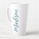 A trendy personalized turquoise monogram latte mug for a girl who loves simple, handwritten gifts. Beautiful cursive script down the side of your bottle spelling out your name in elegant typography.
