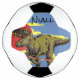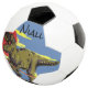 On this soccer ball is a greenish dinosaur with gaping mouth showing razor sharp teeth and gripping a sword with his little arms waiting for battle. Perfect for those little ones that love the dinosaur spirit. Can be customized with a name to make it uniquely yours.