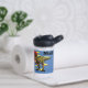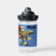 A greenish dinosaur with gaping mouth showing razor sharp teeth and gripping a sword with his little arms waiting for battle. Perfect for those little ones that love the dinosaur spirit. Can be customized with a name to make it uniquely yours.