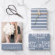 Wrap up those gifts in style with this co-ordinated birthday paper pack. The first sheet features a trendy photo collage design which has space for three photographs. You can add the name of the person celebrating their birthday as well as their age and birthday date. The second sheet is a co-ordinating stripe. The third sheet is pattern with Happy Birthday and bunting.