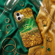 Elevate your everyday style with this luxurious and artistic design. This aesthetic features a stunning abstract composition blending deep emerald green liquid marble swirls with a rich, textured faux gold metallic foil effect. The contrast between the organic green stone look and the glamour of the crinkled gold creates a sophisticated, high-end vibe. Centered on the design is an elegant monogram script, allowing for a unique touch to display a name and initial. Perfect for fashion-forward individuals who love modern glam, geode textures, and chic accessories. Please note: The metallic foil and glitter textures are high-quality digital prints, not actual raised foil.