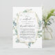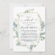 Wild forest watercolor woodland eucalyptus herbarium long distance virtual wedding invitation with gold geometric frame designed to be quickly and easily customized to your specifics.