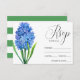 Invitations de mariage à la mode rustique RSVP avec fleurs d'hydrangée bleue et motif rayé blanc et vert au verso de la carte. Ces invitations sont parfaits pour une fête de campagne, de ferme, de jardin ou de jardin ou de style mariage. Ce design est également disponible pour d'autres événements. Pour une demande personnalisée, veuillez nous contacter par l'intermédiaire du magasin
