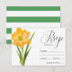 Trendy rustic style wedding invitations RSVP with yellow crocus flowers and white and green striped pattern on the reverse of the card. These invites are perfect for a country, farmhouse, garden party or barnyard or style wedding party.
