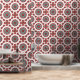 This peel and stick wallpaper features a captivating design with bold visual elements. The background colour is a vibrant red, creating a striking base.