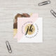 Trendy Geometric Pink & Gold Monogram With Photo Square Business Card