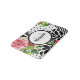 Trendy Geometric Stripe Pattern Red Foral Monogram Bath Mat