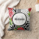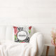 Trendy Geometric Stripe Pattern Red Foral Monogram Throw Pillow