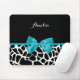 Trendy Giraffe Animal Print Turquoise Bow and Name Mouse Pad