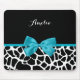 A chic black and white giraffe print mousepad with a trendy aqua blue ribbon tied into a girly bow. Personalize this cute animal print design by adding your name. Flat printed image, not actual bow.
