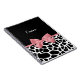 A trendy black and white giraffe print notebook with a girly rosy pink ribbon tied into a cute bow. Personalize this elegant animal print design by adding your name. Flat printed image, not actual bow.