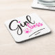 Trendy Girl Boss Typography Pink Black Hearts Coaster