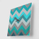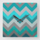 Trendy Girly Grey Teal Chevron Zigzag Pattern Square Wall Clock