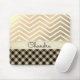 A shimmery, ombre, gold and white chevron pattern with a lacy ribbon where you can personalize it to make it uniquely your own and a brown and tan gingham chequered pattern for contrast. Trendy, stylish vibes.