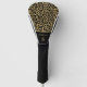 This trendy elegant golf head cover features glitter leopard print on gold background with black border and personalized with your name. A chic addition to your game. Makes a great gift.