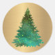 Trendy Gold Green Glitter Tree Christmas Classic Round Sticker