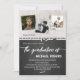 Graduation Party Invitation for him with a modern and unique chalkboard design with a brushed headline. Add 2019, 2020 or any year to personalize this trendy design. You can use it for any graduate - high school, college, university… Easily replace three photos in simple frames decorated with pieces of sticky tape.