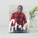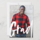 Celebrate your high school or college graduate with this vertical one-photo graduation announcement. The modern script "grad" on the front in white is perfect for a trendy grad. The backer is charcoal grey, but the colour can be changed to any school colour by clicking "customize."