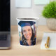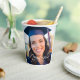 This trendy graduation party paper cup features sophisticated handwritten white script over a chic full photo of your graduate. Customize this grad decor with your high school, college, or university photograph behind your senior details.
