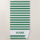 A trendy and modern striped beach towel with green and white stripe pattern. Personalize with your name.