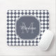 Trendy Grey and White Checked Monogrammed Name Mouse Pad
